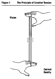 Yes, I am going to start with the dictionary. Here is what is listed for creative tension: a situation where disagreement or discord ultimately gives rise to better ideas or outcomes. I learned about creative tension while reading Peter Senge’s The Fifth Discipline. He had the current reality and vision as two hands separated by an elastic band. The space between is the creative tension.